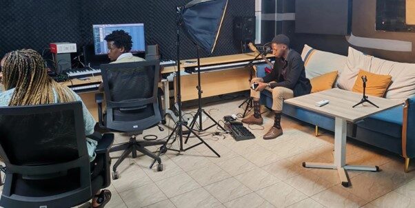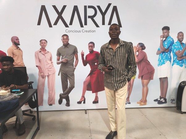 Ugandan designer, Lincoln Axarya, at MoTIV’s creative hub in Kampala, showcasing AXARYA – Conscious Creation, a brand that blends contemporary fashion with sustainability and local craftsmanship. MoTIV provides a collaborative space for designers like him to innovate and grow Africa’s creative economy.