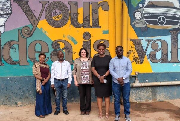 MoTIV Research Visit: (Left to right: Amanda Gowa, Community and Programme Development Lead; Anthony Tibaingana, Makerere University; Jen Snowball, Rhodes University; Rita Ngenzi Founding Director, Africa Creatives Alliance and MoTIV), Ivan Sewajje, Head of Brand Innovation, MoTIV)