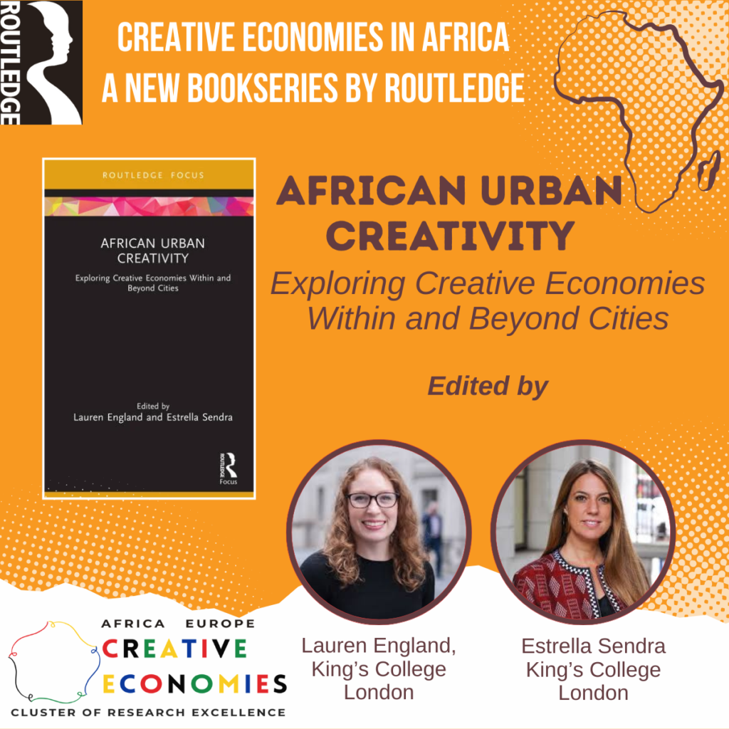 We are proud to share the news that the first book in the CoRE / Routledge Book Series on Creative Economies in Africa is now available. Thanks to editors Dr Lauren England and Dr Estrella Sendra for bringing together this edited collection, contributing to understanding creative economies in Africa, specifically the urban dynamics of creativity and the urbanisation of the creative economy. The book contains six original contributions from academic researchers and creative practitioners, bringing together a range of disciplinary perspectives and presenting case studies from across the continent. We are particularly proud that contributions from across the CoRE are represented, including colleagues and early-career researchers from the University of Lagos, the University of Nairobi, the University of Cape Coast in Ghana, and Rhodes University.